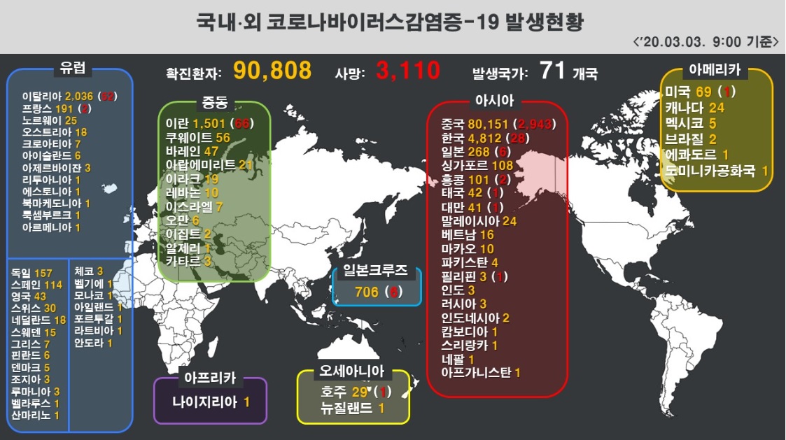 3월 4일 기준으로 총 91개국이 한국인 입국을 금지˙제한조치하고 나섰다.