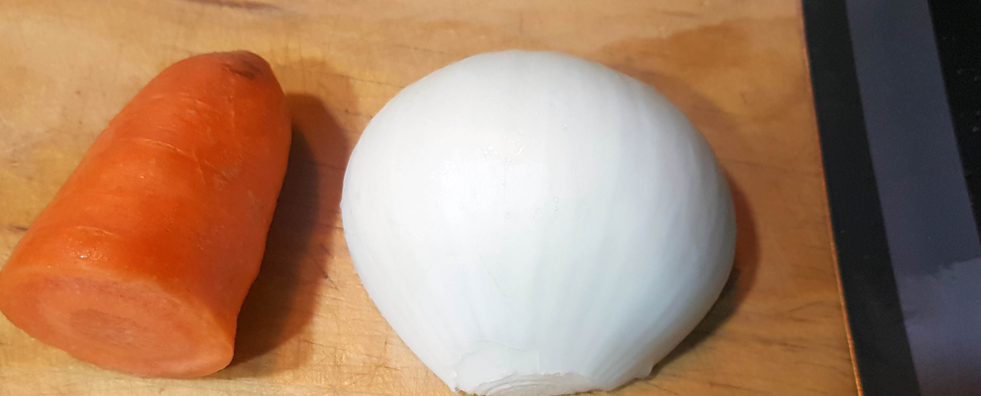 가지가 절여지는 동안 다른 부재료를 손질합니다. 간단하게 양파와 당근만 준비해 보기로 해요. 상황에 따라서 버섯도 준비해 주시면 좋을 듯 해요.