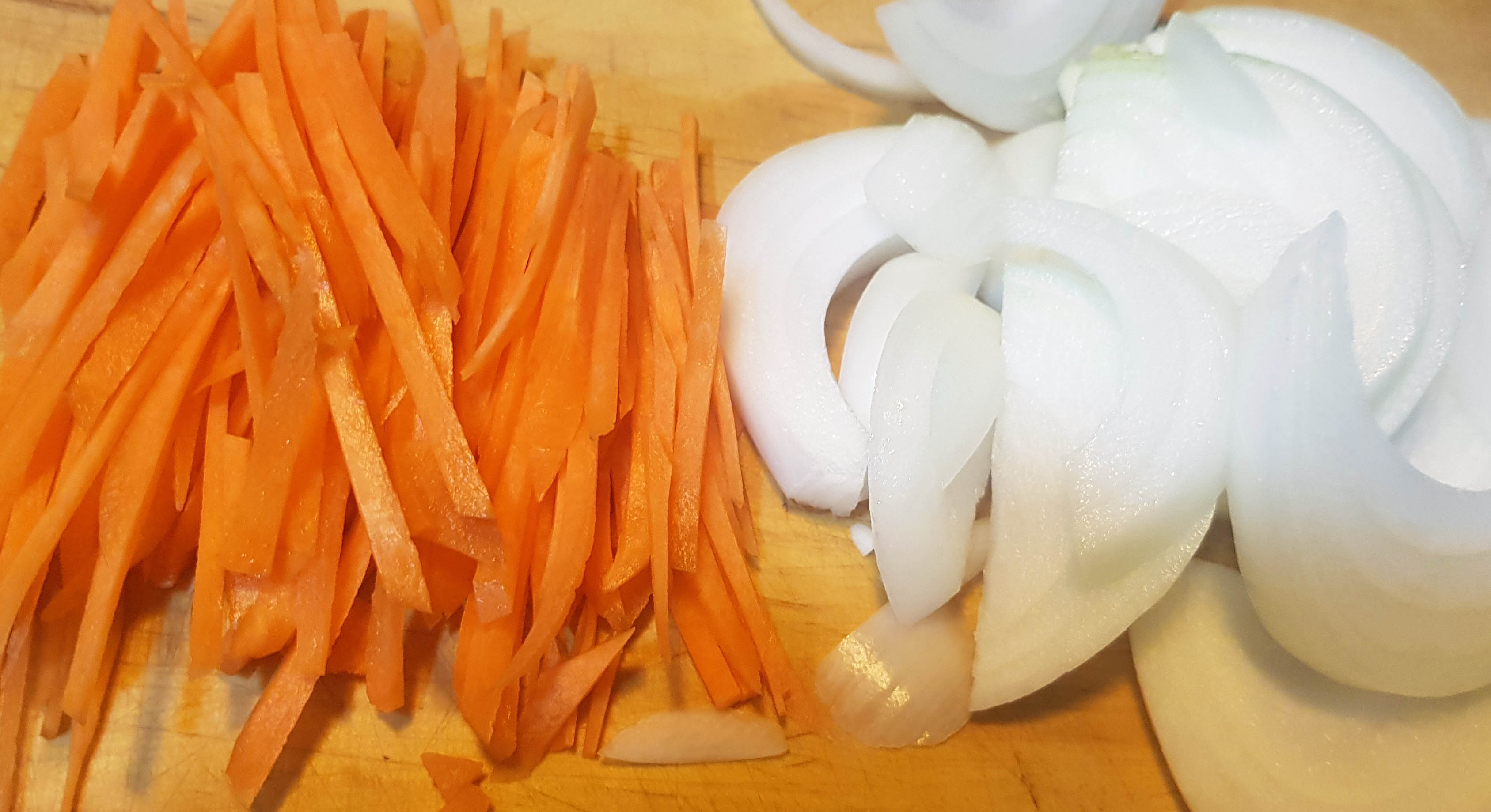 양파와 당근은 얋게 채썰듯이 썰어 준비를 해 둡니다. 많이는 필요하지 않을 듯 해요.